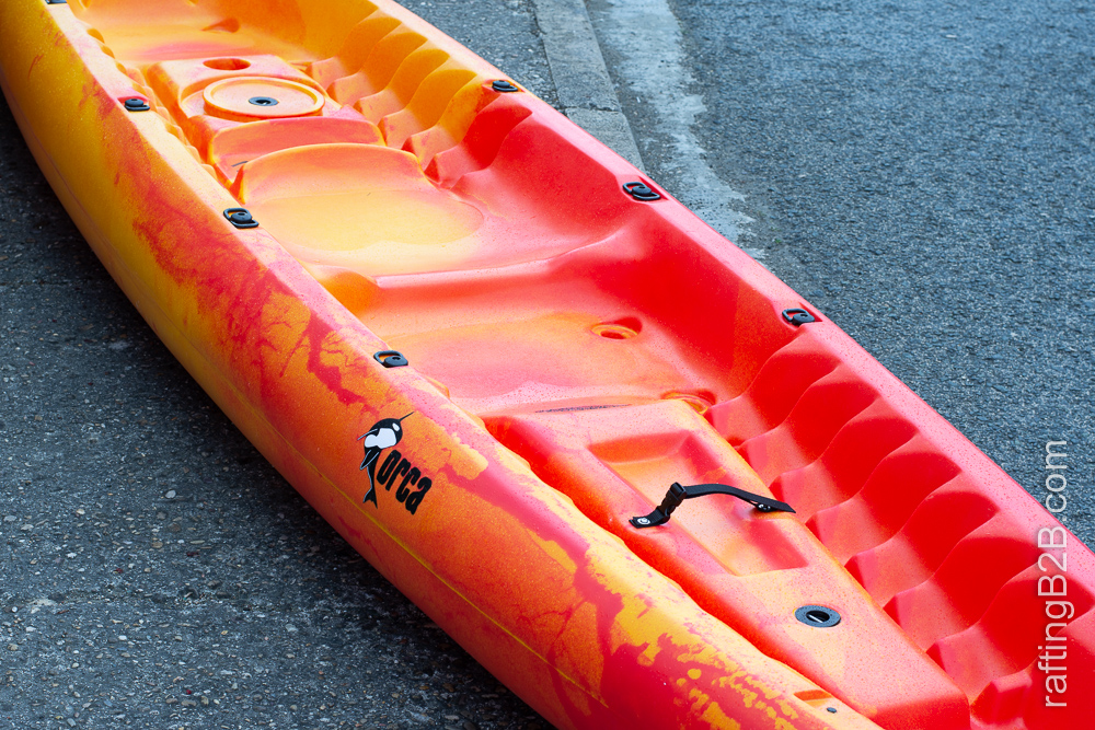 El kayak autovaciable Orca es un modelo rápido, cómodo, estable y versátil. Gracias a su generosa eslora lo hacen un kayak mas deslizante que la mayoría de kayaks autovaciables del mercado. Un paso mas para las empresas que quieren ofrecer a sus clientes una mayor facilidad a la hora de realizar una excursión o sencillamente realizar un paseo por nuestras costas y pantanos. El kayak Orca es un kayak de 1/2/3 plazas que pueden ser ajustados en cuestión de segundos. Este kayak es muy apilable lo que facilita enormemente su transporte y almacenamiento.